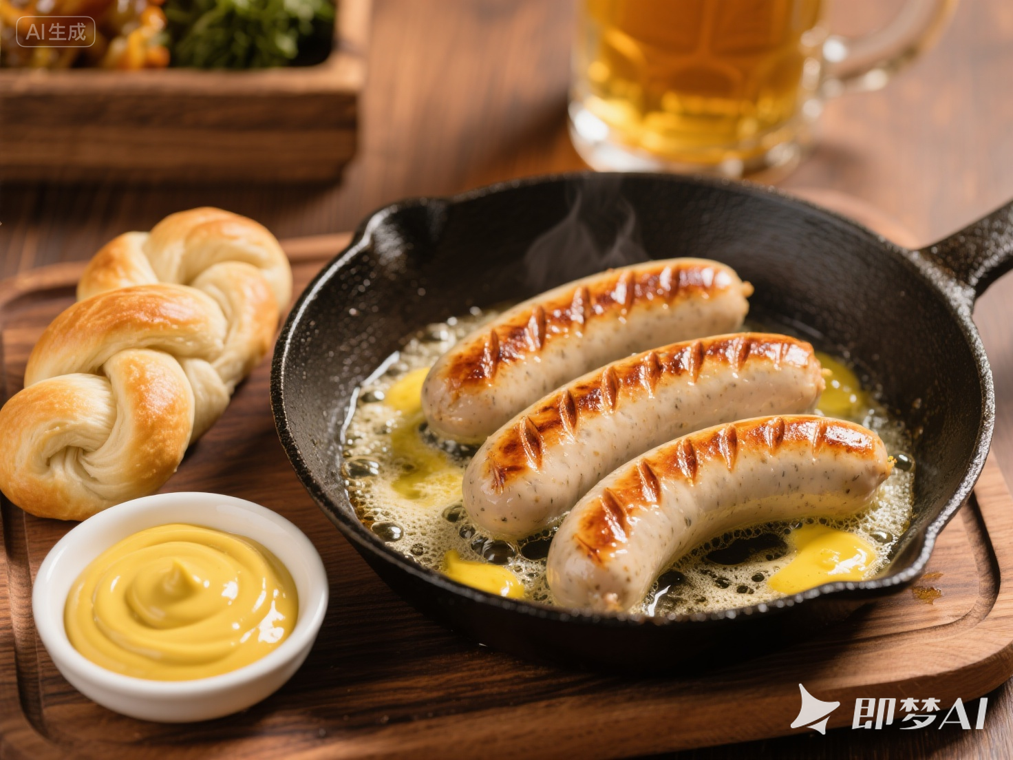 ③ 組裝拼盤(pán): 將煎好的香腸、扭結(jié)包(或烤脆的酸面包)、一碟甜芥末醬和一碟酸椰菜一同擺入盤(pán)中。