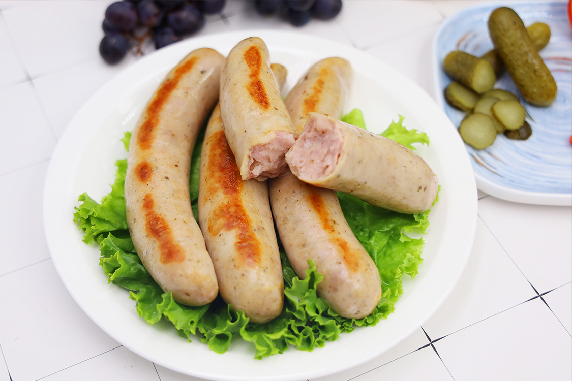 主要配料:豬肉、雞肉、水、大豆蛋白、淀粉、食用鹽、食用葡萄糖、香辛料等