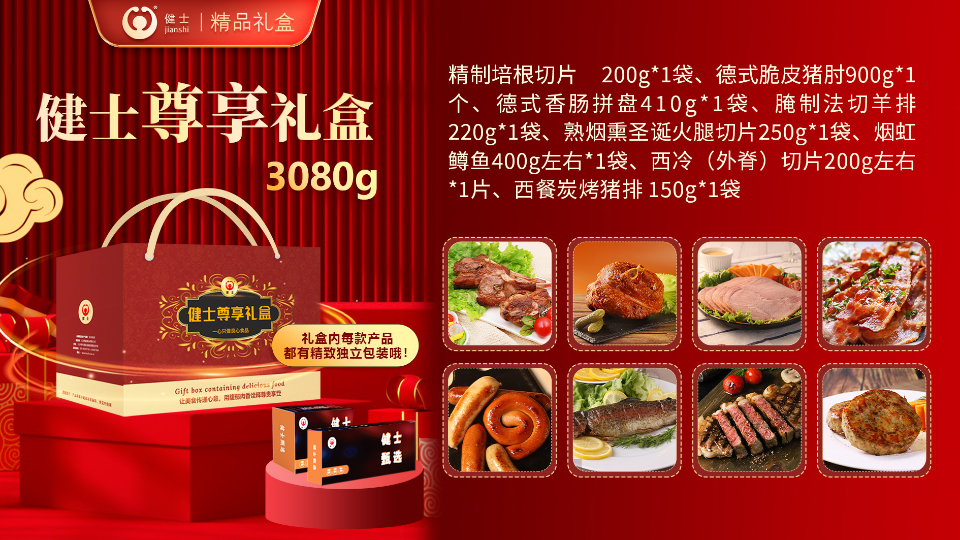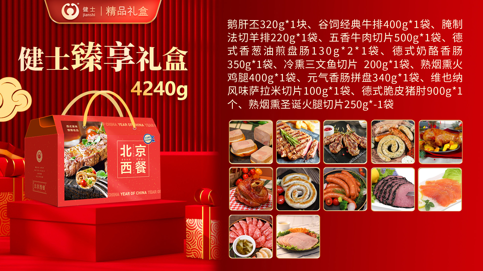禮盒內包含谷飼牛排、法切羊排、鵝肝丕、火雞腿、德式烤肘、經(jīng)典西式香腸以及培根等產(chǎn)品,還原濃郁異域風味,無需繁瑣操作,在家就能享受星級西餐體驗!