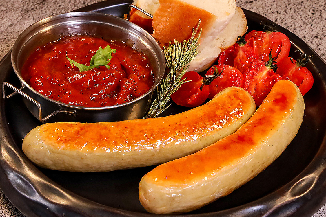主要配料:牛肉、雞肉、水、食用鹽、大豆蛋白、香辛料、天然腸衣、食品添加劑等